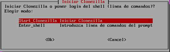 Una vez, seleccionado la configuración del teclado, iniciar Clonezilla.