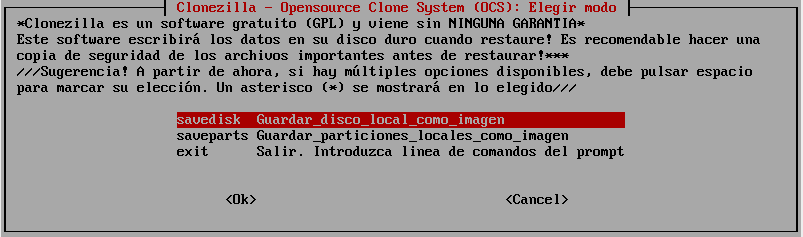 1.- Inicias tu equipo con el LiveCD de Clonezilla: