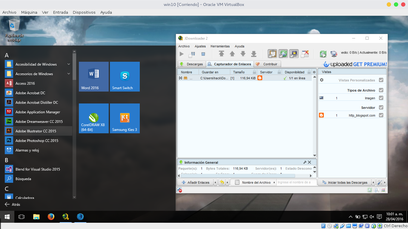 Una vez instalada esa máquina virtual, instalar todo el software necesario, jdowloader, megasyn, office, winrar, etc. Lo más divertido de esto, es que no tienes que instalar un antivirus, ni siquiera preocuparte por si se infecta o no. Si se llegara a infectar, solo la eliminas y ya.