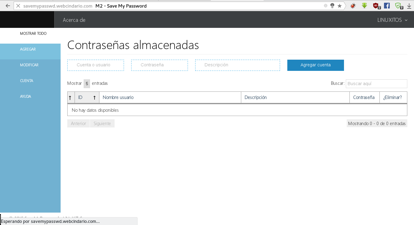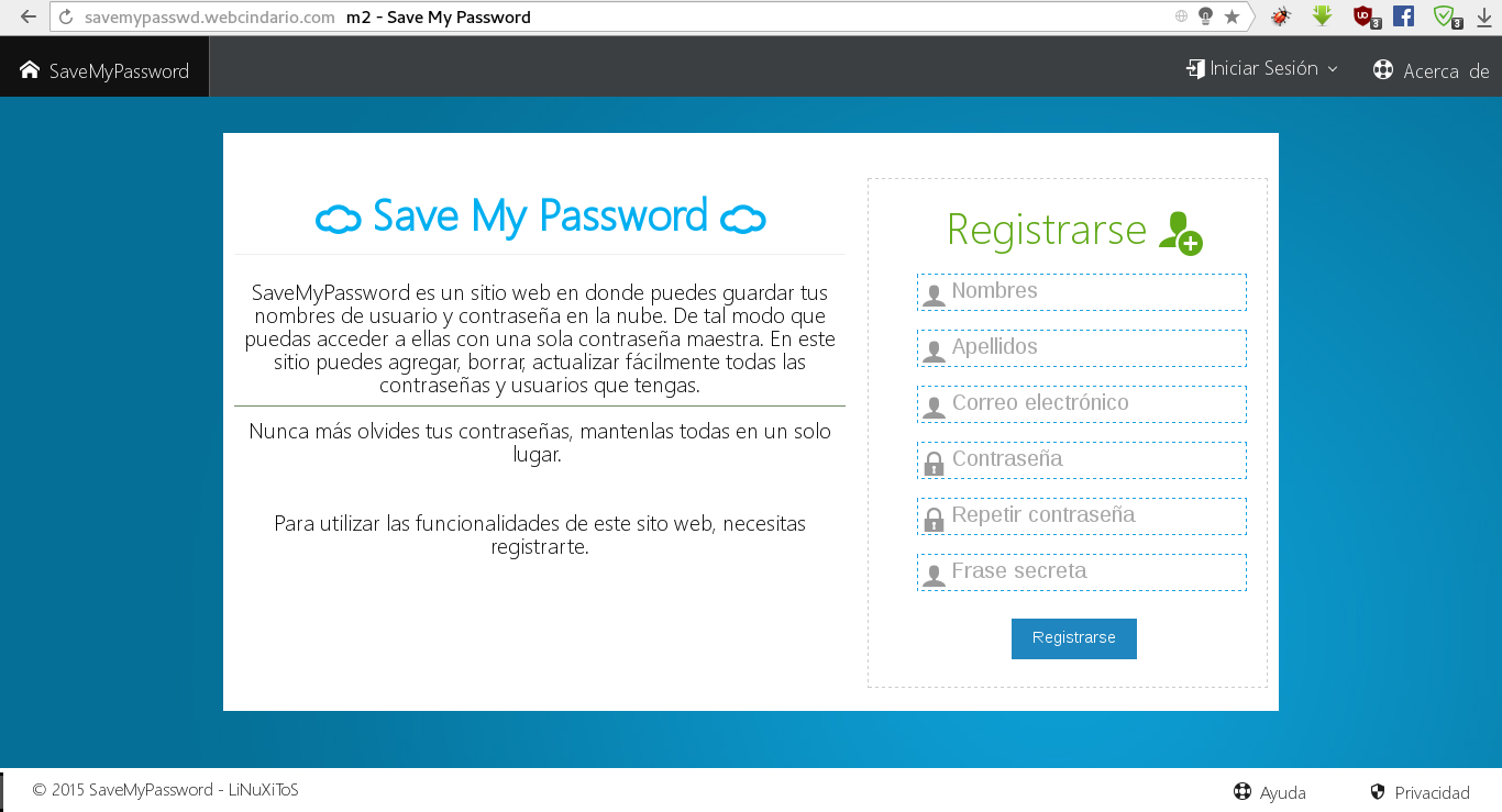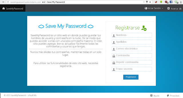 SaveMyPassword es un sitio web en dónde puedes guardar tus nombres de usuario y contraseña en la nube.