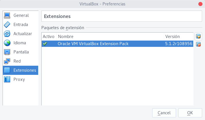 Dependiendo de la versión que se tenga instalado de virtualbox se elegirá la versión de la extensión. La instalación de la extensión es simple.