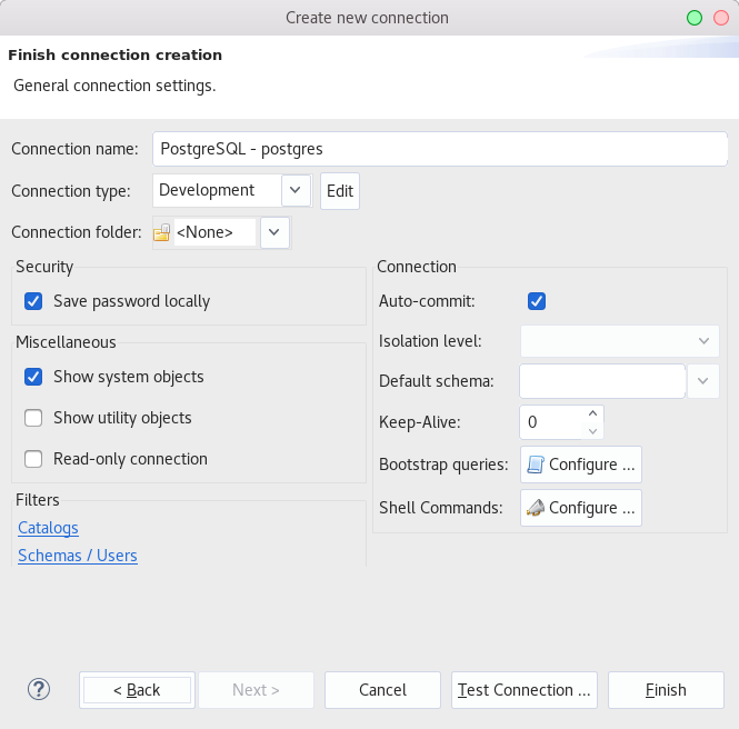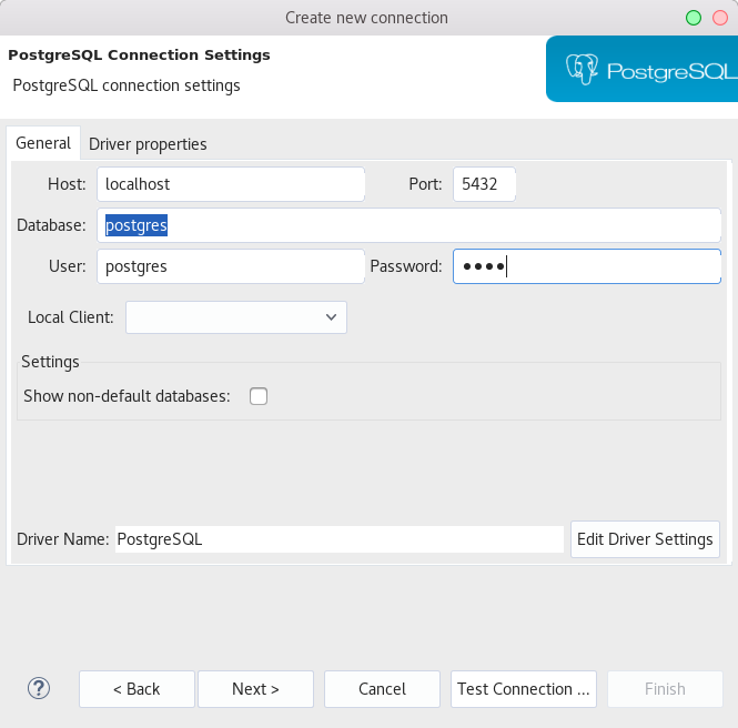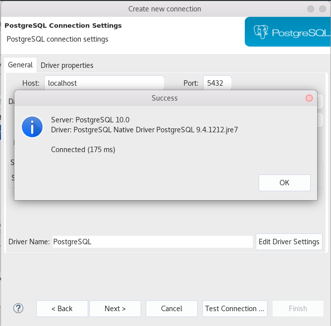 Probar la conexión, si todo va bien, y la instalación de PostgreSQL se instaló correctamente, entonces deberá conectar.