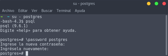 6.- Ingresar desde la consola a la línea de comandos de postgresql