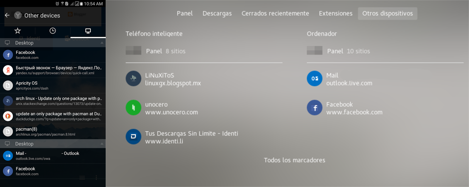 Por ahora, una de las características que más llamó mi atención por completo, es que al momento de iniciar la sincronización en el dispositivo móvil, y en la laptop, se pueden visualizar todos los sitios abiertos en ambos equipos, es decir, que es posible abrir los mismos sitios en ambos dispositivos al mismo tiempo.