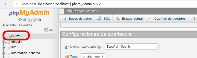 Una vez creada la BD, seleccionarla e ir la pestaña SQL. Una vez ahí, copiar y pegar las siguientes instrucciones sql para crear la base de datos.