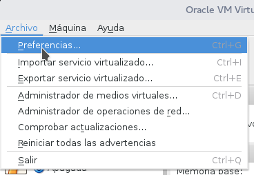 Ahora abrir VirtualBox, ir al menú archivo, seleccionar preferencias.